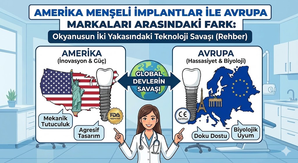 Amerika Menşeli İmplantlar ile Avrupa Markaları Arasındaki Fark: Okyanusun İki Yakasındaki Teknoloji Savaşı (2025) Diş eksikliği tedavisinde implant yaptırmaya karar verdiğinizde, kendinizi adeta bir “Dünya Turu”nun […]