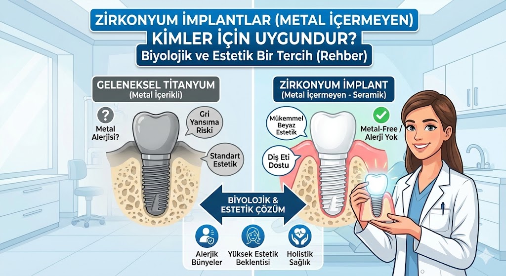 Zirkonyum İmplantlar (Metal İçermeyen) Kimler İçin Uygundur? Biyolojik ve Estetik Bir Tercih Diş eksikliği tedavisinde implantolojinin altın standardı uzun yıllardır titanyum olmuştur. Ancak dünya değişiyor, sağlık […]