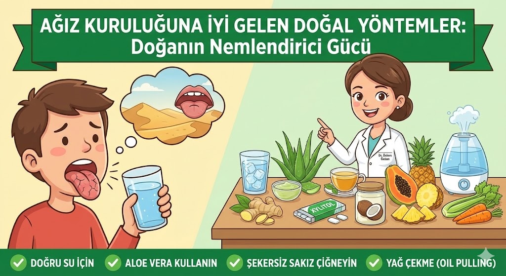 Özetlemek gerekirse; ağız kuruluğuna iyi gelen doğal yöntemler, günlük yaşam konforunuzu artırmak için harika yardımcılardır. Su içmek, doğru sakızı çiğnemek veya yağ çekmek gibi basit alışkanlıklar, ağız sağlığınızı korumanıza destek olur.