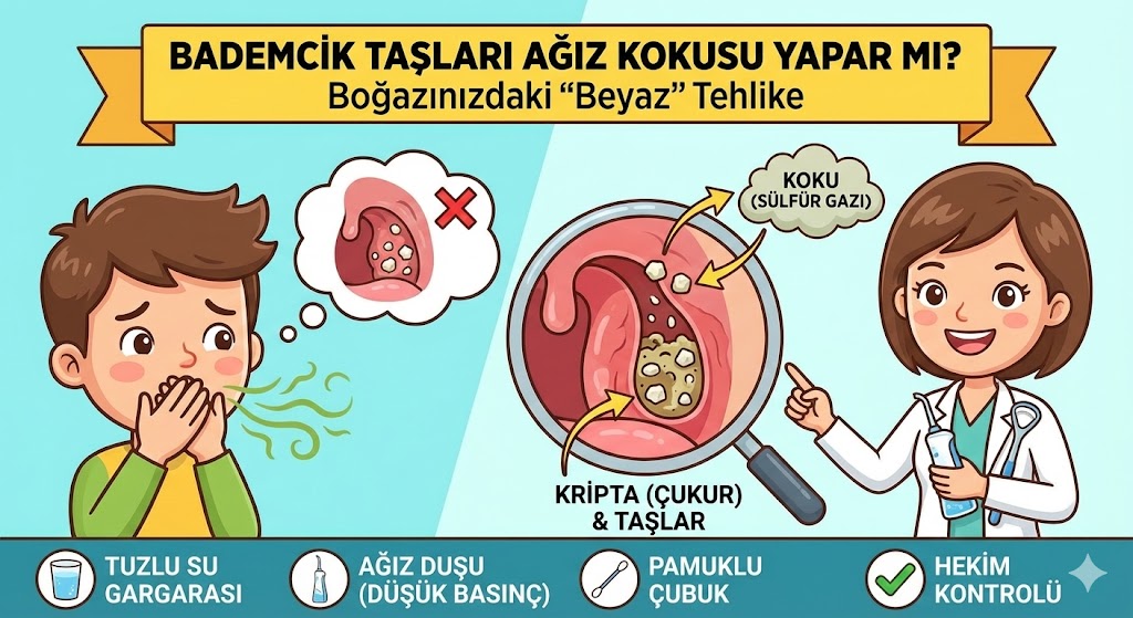 Dişlerinizi günde iki kez fırçalıyorsunuz, diş ipi kullanıyorsunuz, dilinizi temizliyorsunuz… Hatta mide doktoruna bile gittiniz ama o inatçı, ağır ve tarif edilemez ağız kokusundan bir türlü kurtulamadınız. Bir gün aynada ağzınızı kocaman açıp boğazınıza baktığınızda, bademciklerinizin üzerinde pirinç tanesi büyüklüğünde, beyaz veya sarımsı “noktacıklar” fark ettiniz.