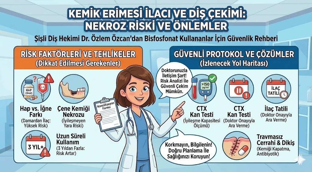 Bu kapsamlı rehberde, Şişli Diş Hekimi Dt. Özlem Özcan olarak; hangi ilaçların riskli olduğunu, hap ve iğne tedavisi arasındaki devasa farkı, CTX kan testinin ne işe yaradığını ve dişinizi güvenle çektirmek için izlediğimiz yol haritasını anlatacağım.