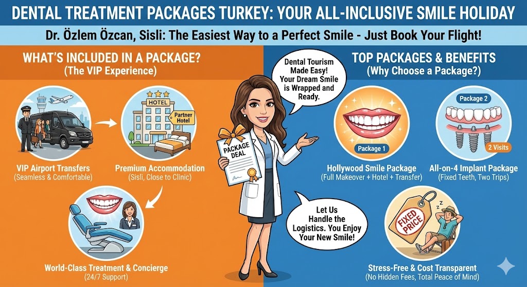 In this comprehensive guide, Dt. Özlem Özcan, a leading aesthetic dentist in Sisli, Istanbul, explains exactly what these packages include, how they save you money, and why combining your dental treatment with a vacation is the best decision you will ever make.