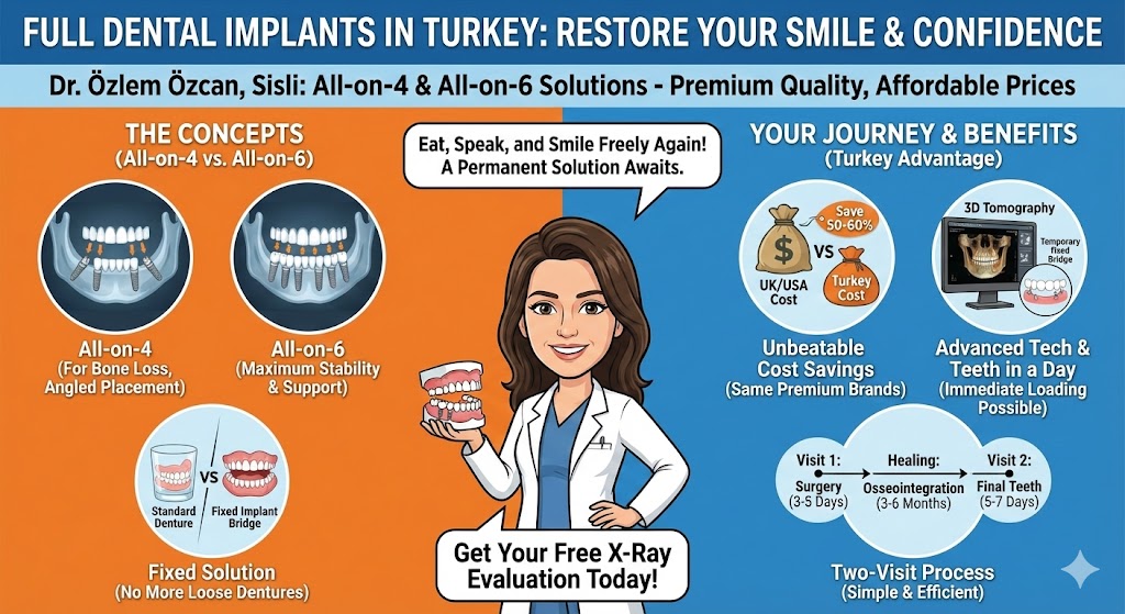 In this comprehensive guide, Dt. Özlem Özcan, a leading dental expert in Sisli, Istanbul, explains everything you need to know about restoring your full mouth. From the revolutionary All-on-4 technique to the costs and the recovery process, here is your roadmap to a second chance at a perfect smile.