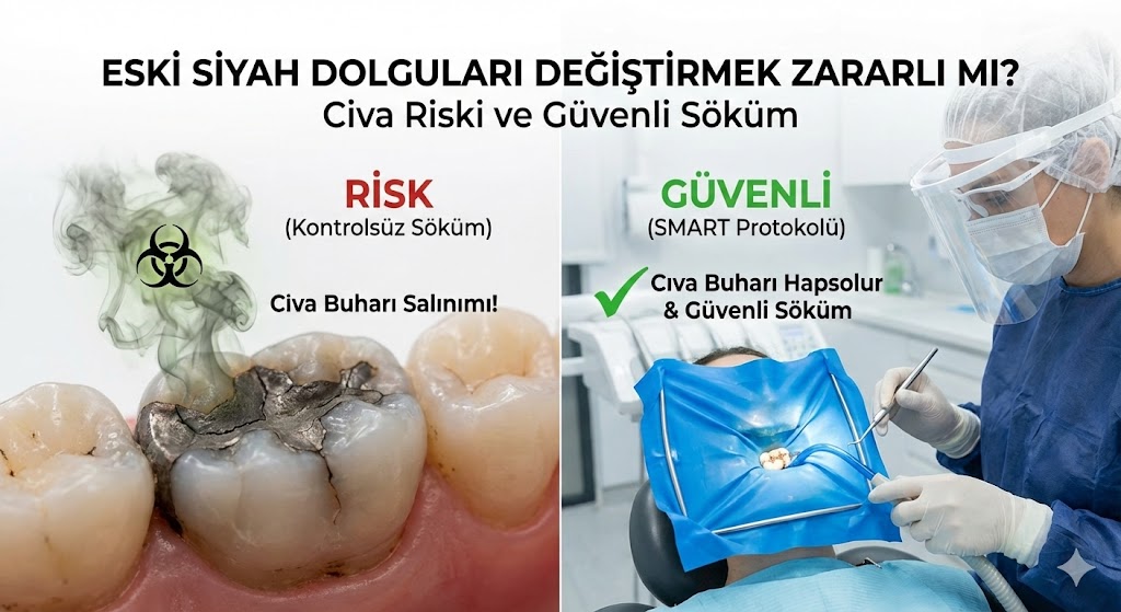 Pek çok hastamız kliniğimize şu kritik soruyla başvuruyor: “Hocam, estetik için bunları aldırmak istiyorum ama eski siyah dolguları değiştirmek zararlı mı? Sökülürken civa yutar mıyım?”
