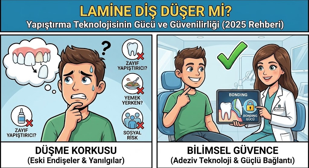 Estetik bir gülüş için incecik yaprak porselenler (Lamine) yaptırdınız. Aynaya baktığınızda sonuç mükemmel. Ancak bir yandan da içinizi kemiren o küçük şüphe var: “Bu kadar ince bir porselen, sadece yapıştırıcı ile dişimde nasıl duracak? Yemek yerken veya konuşurken aniden düşer mi?”