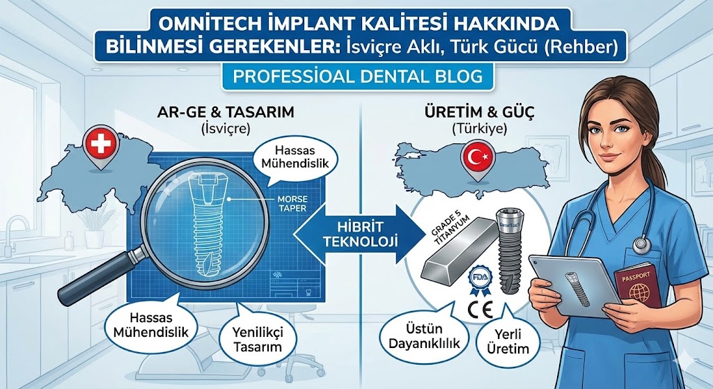 Diş eksikliği tedavisinde implant yaptırmayı düşünen hastalarımızın karşısına çıkan marka seçenekleri her geçen gün artıyor. İthal (Avrupa/Amerika) markaların yüksek maliyetleri, gözleri yerli seçeneklere çevirirken; hastaların zihnindeki en büyük soru işareti “Kalite ve Güven” oluyor. Tam bu noktada, “İsviçre’de Geliştirilen, Türkiye’de Üretilen” mottosuyla dikkat çeken bir marka sahneye çıkıyor: Omnitech İmplant.