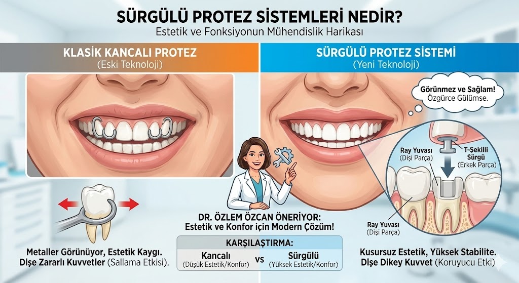 Bu kapsamlı makalede, Şişli Diş Hekimi Dt. Özlem Özcan olarak, protez teknolojisinin bu özel alanına ışık tutacak, sürgülü sistemlerin mekaniğini, diğer sistemlerden farklarını ve kime uygun olduğunu detaylarıyla anlatacağım.
